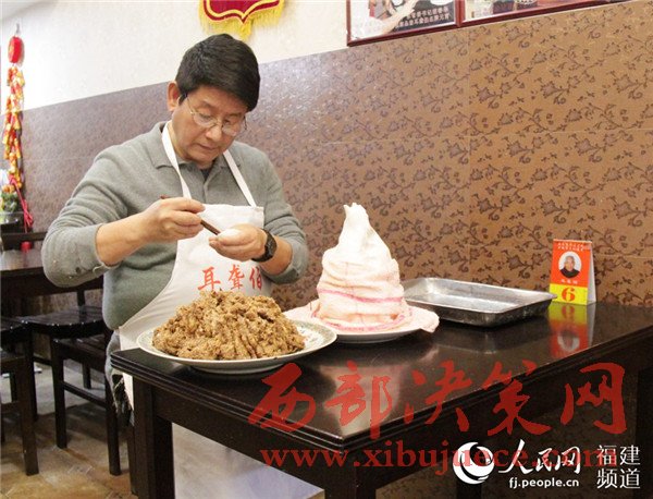 “耳聾伯”并不是招牌,它是大家口耳相傳的口碑叫出來的。林英德自己寫了“風(fēng)雨傳承百年美食,弘揚(yáng)奉獻(xiàn)文化遺產(chǎn)”這家老字號店的對聯(lián),他覺得有義務(wù)將這份技藝一代一代傳承下去,現(xiàn)在兒子輩傳承了,孫子輩也要繼續(xù),不能遺失。