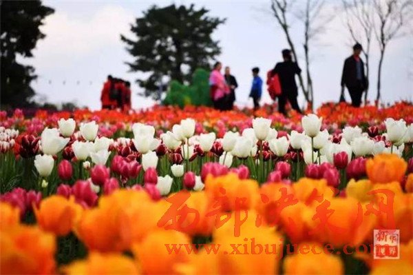 游客在重慶市長(zhǎng)壽湖景區(qū)觀賞盛開(kāi)的郁金香。