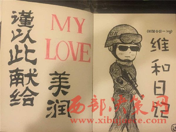 畫著畫著,這個鐵骨錚錚的七尺男兒,便把對女兒的思念畫成了一本書,他還給這個畫冊取了個名字——《你叫我爸爸,我陪你長大》。這本畫冊成了他維和一年,帶給女兒最用心最特別的一份禮物。