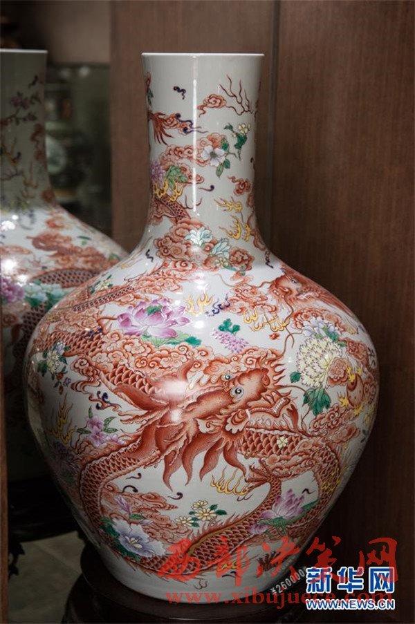 這是3月14日在北京京彩瓷博物館里拍攝的作品《粉彩龍騰錦繡天球瓶》。