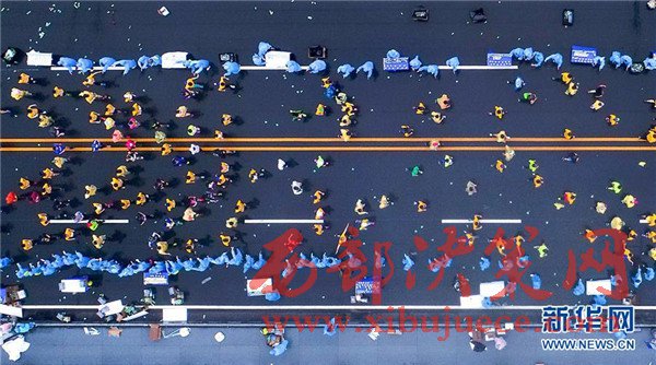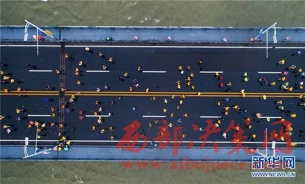 當日,2017武漢馬拉松在雨中鳴槍開跑。武漢馬拉松因穿越漢江、長江、東湖,橫跨包括武漢長江大橋在內(nèi)的多座橋梁而備受馬拉松愛好者追捧。