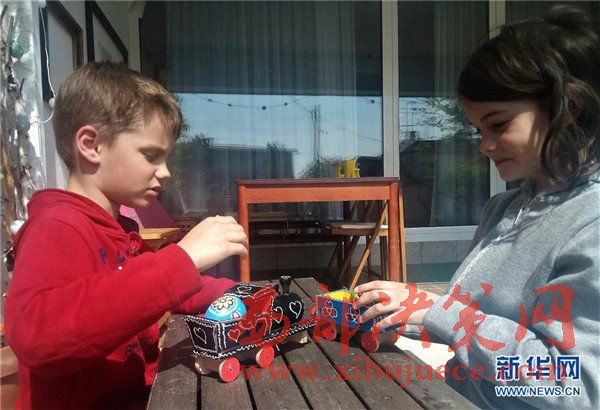 4月13日,兩個(gè)孩子在克羅地亞首都薩格勒布玩?zhèn)鹘y(tǒng)的木制玩具。