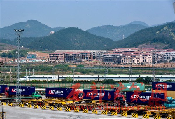 4月15日,浙江義烏西站鐵路口岸,準(zhǔn)備通過中歐班列發(fā)往國外的集裝箱。“統(tǒng)一品牌中歐班列”作為國際貨物聯(lián)運(yùn)的新型組織方式,已成為沿線各國加強(qiáng)基礎(chǔ)設(shè)施互聯(lián)互通、提升務(wù)實(shí)合作水平的重要載體和推進(jìn)“一帶一路”建設(shè)、促進(jìn)共問繁榮發(fā)展的重要平臺(tái)。