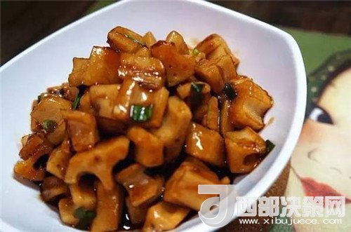 蓮藕 1節(jié)、老抽 適量、鹽、糖、雞精、白醋、淀粉。