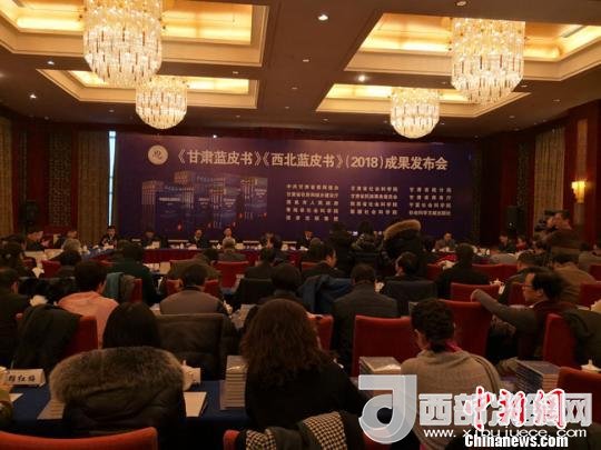 1月8日,2018年度《甘肅藍皮書》、《西北藍皮書》成果發(fā)布會在蘭州舉行。圖為發(fā)布會現(xiàn)場。馮志軍攝