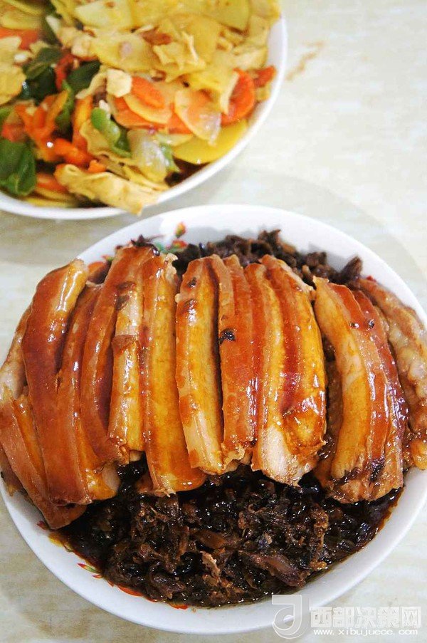 15.出鍋倒出盆內(nèi)的湯汁,將五花肉和梅干菜倒扣在碗內(nèi)
