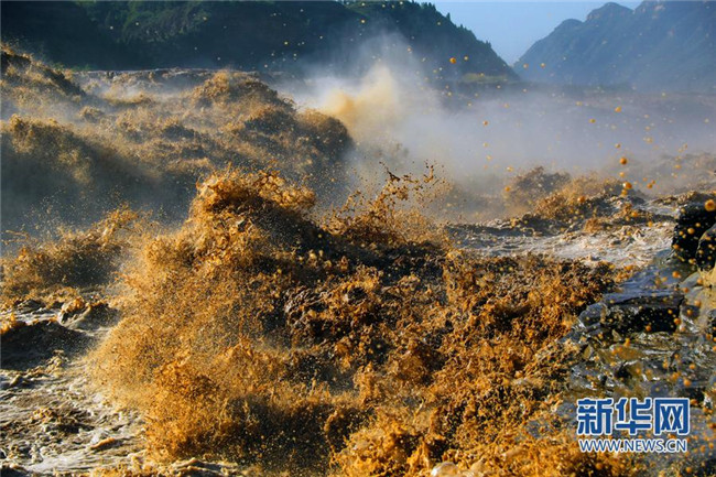 入秋以來,受上游降雨影響,陜西宜川黃河壺口瀑布水量大增,出現(xiàn)“山飛海立”、“旱天鳴雷”的自然景觀,引來眾多游客和攝影愛好者。(趙潔)