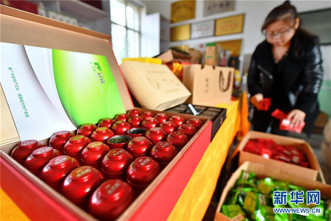 4月10日,平定縣冠山鎮(zhèn)后溝村的村民在整理包裝好的連翹茶。