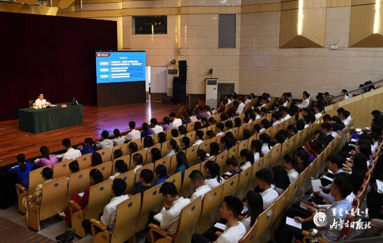 自治區(qū)領(lǐng)導(dǎo)白玉剛、張韶春及有關(guān)部門負(fù)責(zé)同志參加活動。自治區(qū)駐呼高校師生代表530多人聆聽報告。(內(nèi)蒙古日報社融媒體記者 劉曉冬)