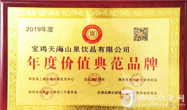 “年度價(jià)值典范品牌”榮譽(yù)由陜西省三秦品牌發(fā)展促進(jìn)中心、企業(yè)家日?qǐng)?bào)社、陜西發(fā)展觀察專家委員會(huì)、陜西省品牌建設(shè)推進(jìn)工作委員會(huì)、全國(guó)品牌社團(tuán)組織聯(lián)席會(huì)陜西省組委會(huì)等單位聯(lián)合評(píng)審頒發(fā)。此次太極之源礦泉水品牌生產(chǎn)灌裝基地、“中國(guó)富硒食品產(chǎn)業(yè)化基地”——寶雞天海山泉飲品有限公司獲得此項(xiàng)榮譽(yù),可以說(shuō)是對(duì)太極之源品牌價(jià)值的高度認(rèn)可和肯定!