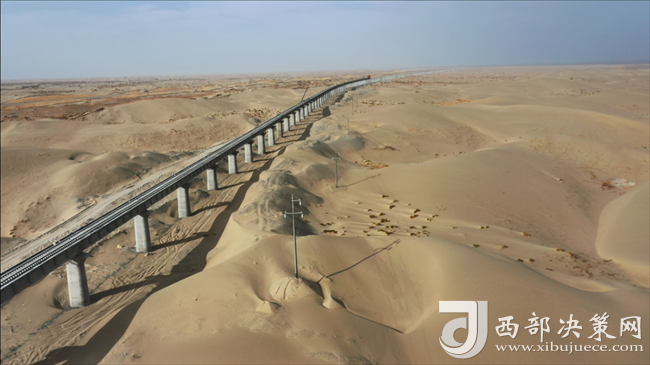 西部決策網(wǎng)訊 9月27日上午,在新建和田至若羌鐵路新疆民豐縣境內(nèi)段的施工現(xiàn)場(chǎng),隨著直鋪機(jī)將最后60米鋼軌推進(jìn)落地,由中鐵第一勘察設(shè)計(jì)院集團(tuán)有限公司總體勘察設(shè)計(jì)的和若鐵路宣告鋪軌完成,標(biāo)志著世界上首條環(huán)沙漠鐵路正式閉環(huán)。