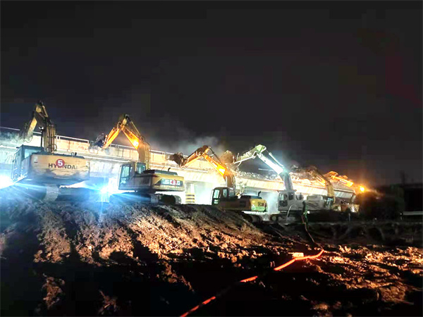 西部決策網(wǎng)訊 10月20日上午6點(diǎn)30分,經(jīng)過14小時(shí)的挑燈夜戰(zhàn),中鐵一局京滬高速公路HA4標(biāo)項(xiàng)目環(huán)鄉(xiāng)公路橋、浦馬線橋兩座橋梁拆除,提前2個(gè)半小時(shí)具備了恢復(fù)道路通行的條件,順利完成既定目標(biāo)。