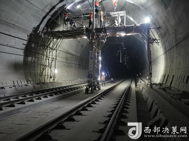 西部決策網(wǎng)訊鄭萬鐵路干溪溝隧道全長11883米,正線雙線隧道設(shè)計,時速350公里,是鄭萬鐵路重慶段控制性重難點工程,隧道于2016年12月開工建設(shè)。昨天,記者走訪發(fā)現(xiàn),干溪溝隧道內(nèi)燈火通明,隧道內(nèi)工人們正在忙著清洗隧道、與站后工程的銜接等工作。