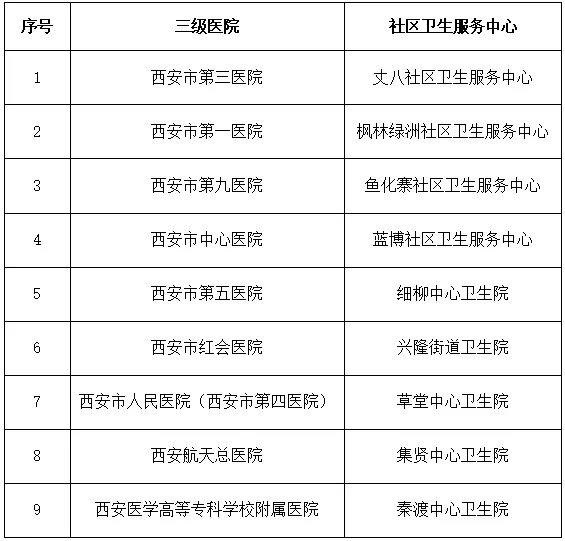 指定市屬三級醫(yī)院9家,對口支援高新區(qū)9個社區(qū)衛(wèi)生服務中心(或鄉(xiāng)鎮(zhèn)衛(wèi)生院,下同)(對口支援關系見附件),簽訂對口支援協(xié)議,下派內(nèi)科、外科、婦產(chǎn)科醫(yī)務人員駐點社區(qū)衛(wèi)生服務中心坐診,另外由西安市兒童醫(yī)院、西安市中醫(yī)醫(yī)院向丈八社區(qū)衛(wèi)生服務中心、楓林綠洲社區(qū)衛(wèi)生服務中心、魚化寨社區(qū)衛(wèi)生服務中心、藍博社區(qū)衛(wèi)生服務中心派中醫(yī)醫(yī)師和兒科醫(yī)師,確保社區(qū)衛(wèi)生服務中心能順利開展基本診療工作。高新區(qū)要加強社區(qū)衛(wèi)生服務中心硬件建設,配備必要的檢查、檢驗設備,確保能夠完成基本醫(yī)療所必需的檢查和檢驗項目。支援醫(yī)院與社區(qū)衛(wèi)生服務中心建立上下轉(zhuǎn)診關系,對超出社區(qū)衛(wèi)生服務中心診療能力的轉(zhuǎn)往上級醫(yī)院進一步診治,支援醫(yī)院應采取預約門診、綠色通道或預留床位等方式做好支持。