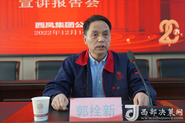 西部決策網(wǎng)訊(記者劉玉 韓宗憲 通訊員 張?zhí)炝ⅲ?2月14日,西鳳集團(tuán)公司召開黨的二十大精神專題宣講會(huì)。西鳳集團(tuán)公司黨委書記、董事長(zhǎng),股份公司董事長(zhǎng)張正,公司領(lǐng)導(dǎo)班子成員,各黨支部書記、基層聯(lián)系點(diǎn)所在支部黨員、黨委系統(tǒng)工作人員共70余人參加會(huì)議。集團(tuán)公司黨委副書記郭拴新主持會(huì)議。