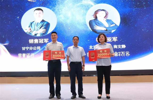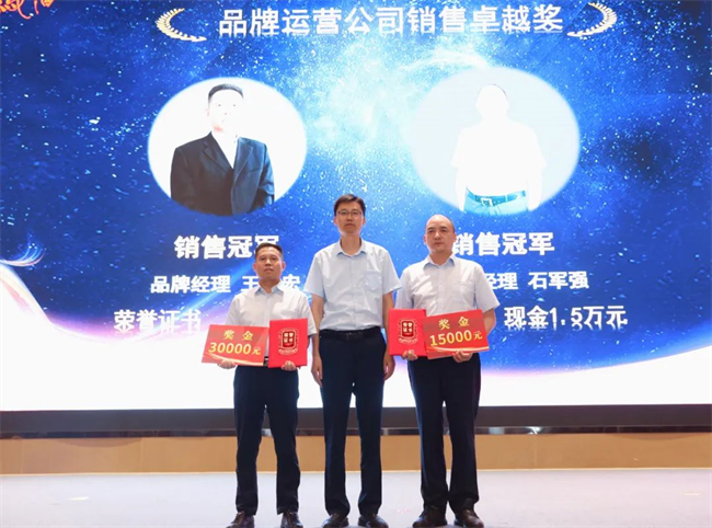 張正為銷售冠亞軍頒發(fā)榮譽證書與獎金