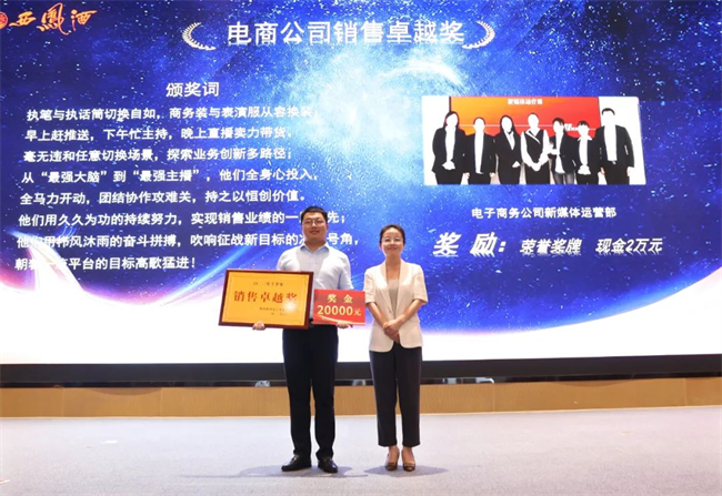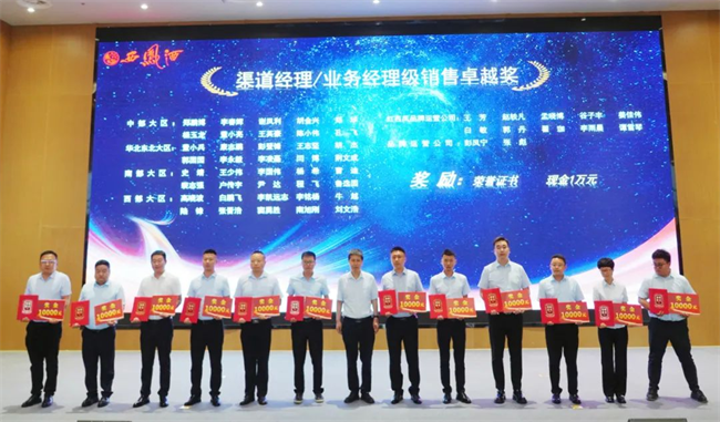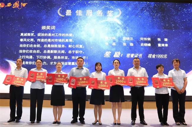 西鳳股份公司財務(wù)管理部部長陳宏利為業(yè)務(wù)經(jīng)理銷售卓越獎獲得者頒發(fā)榮譽證書與獎金