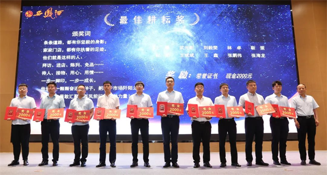 西鳳股份公司市場管理部部長齊紅軍為最佳耕耘獎獲得者頒發(fā)榮譽證書與獎金