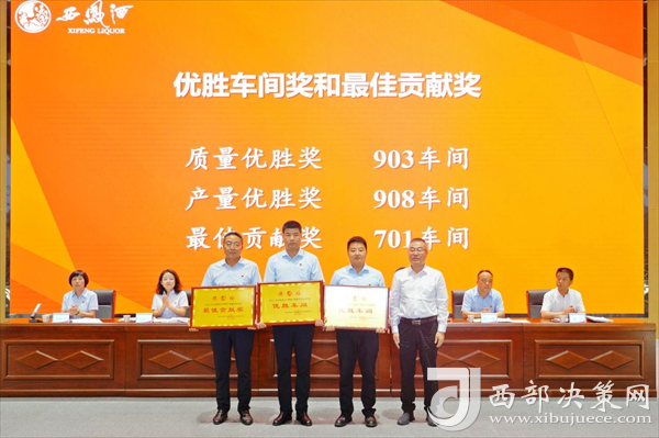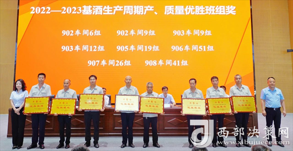 會(huì)上,張周虎宣讀了《關(guān)于對(duì)2022—2023基酒生產(chǎn)周期產(chǎn)質(zhì)量勞動(dòng)競(jìng)賽獲獎(jiǎng)車間、班組進(jìn)行表彰獎(jiǎng)勵(lì)的決定》。與會(huì)領(lǐng)導(dǎo)為受表彰的獲獎(jiǎng)車間、班組頒發(fā)獎(jiǎng)牌。