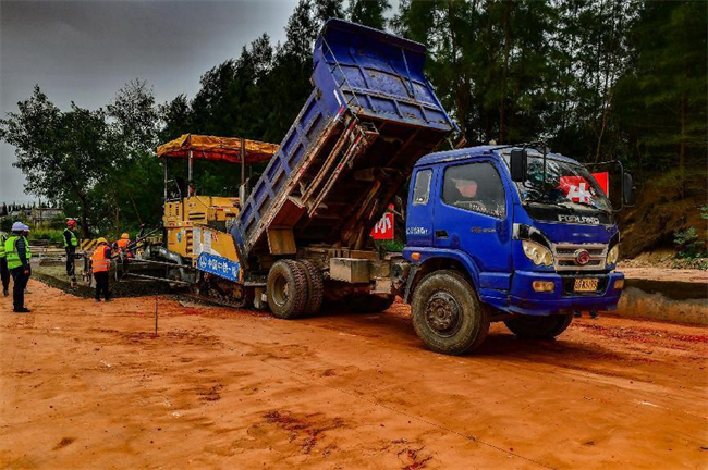 這次水穩(wěn)層攤鋪施工的是海濱一路,長約1745米,路寬38米。該路段已于2023年3月31日開始施工,在先后完成軟基處理、路基工程、雨水管道、電力管道、給水管道工程后,開始了水穩(wěn)層攤鋪施工。