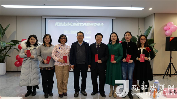 民盟省政府委員會表彰的《民盟陜西省政府直屬機(jī)關(guān)基層委員會簡史》編撰人員與領(lǐng)導(dǎo)合影