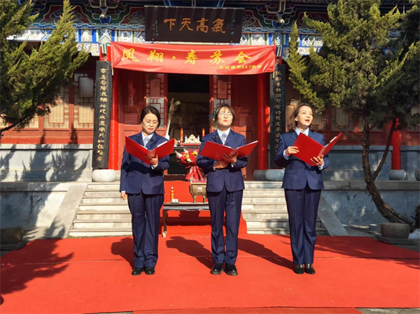 寶雞市蘇軾研究會(huì)常務(wù)副會(huì)長、鳳翔東湖管理處主任齊會(huì)斌致辭,寶雞市蘇軾文化研究會(huì)顧問、鳳翔區(qū)作家協(xié)會(huì)主席魯旭宣讀壽辭。