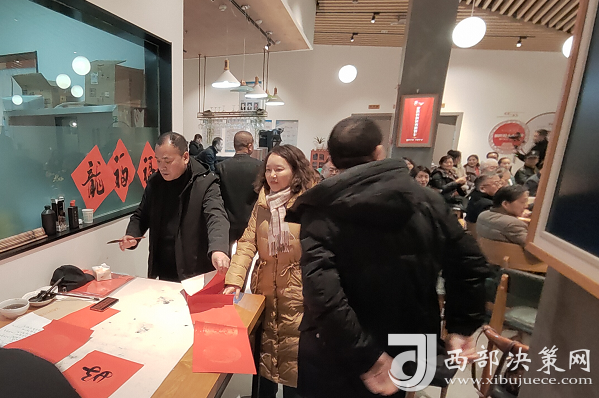 活動邀請中國書法家協會會員段曉華等書法家為大家現場寫對聯。紅紅的“福”字為龍年增添路許多色彩,大家都說,福字一到,來年定有好兆頭。
