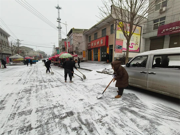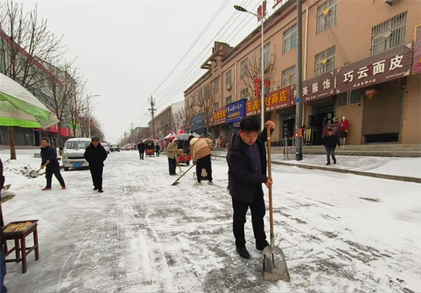 以雪為令,疏通道路。領(lǐng)導(dǎo)班子成員在崗指揮、對鎮(zhèn)區(qū)內(nèi)路段包片開展掃雪鏟冰,同時(shí)督促商戶履行“門前三包”區(qū)域積雪清掃職責(zé)。鎮(zhèn)村黨員干部紛紛行動(dòng),主動(dòng)參與到掃雪鏟冰活動(dòng)中,清理主要道路積雪,方便群眾出行。