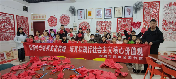 西部決策網(wǎng)訊(記者劉玉 韓宗憲 通訊員 趙 星)為充分發(fā)揮公共圖書館宣傳文化職能,在龍年新春到來之際,1月31下午,寶雞市鳳翔區(qū)圖書館在鳳翔剪紙傳習(xí)所成功舉辦了“巧手剪紙迎龍年,傳統(tǒng)非遺潤童心”少兒剪紙?bào)w驗(yàn)春節(jié)主題活動(dòng)。35名小讀者及家長熱情參與了活動(dòng)。