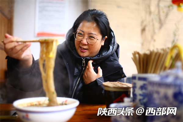 西部網(wǎng)訊(記者 馬晴茹 賀桐 杜鵬)一手拎著麻花酸奶,一手牽著活蹦亂跳的孩子,2月16日(大年初七),游客劉先生帶著一家三口漫步在陜西咸陽(yáng)禮泉縣袁家村的小吃街,整個(gè)街巷擠滿(mǎn)了人。剛吃完酸辣粉,他又開(kāi)始環(huán)顧四周覓尋下一個(gè)不用排隊(duì)的美食。