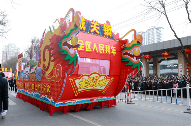車頂上昂首挺立、踏云欲飛的金龍,象征著城關鎮(zhèn)在2024年“龍騰四海”。鳳翔泥塑十二生肖裝飾,凸顯了城關鎮(zhèn)文旅融合前景廣闊。