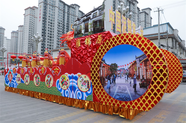“中國泥塑第一村”彩車:寓意“龍騰四海,福耀城關”,展現(xiàn)城關鎮(zhèn)敢為人先、拼搏奮進的精氣神。