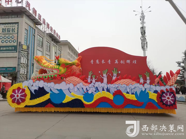 “青蔥產(chǎn)業(yè)、再創(chuàng)輝煌”農(nóng)業(yè)宣傳彩車,用象征“奮勇拼搏、勇立潮頭”精神的龍頭做主圖,寓意聚焦黨建引領(lǐng)鄉(xiāng)村振興,持續(xù)壯大村集體經(jīng)濟(jì),做大做強(qiáng)“長青大蔥”龍頭產(chǎn)業(yè)。