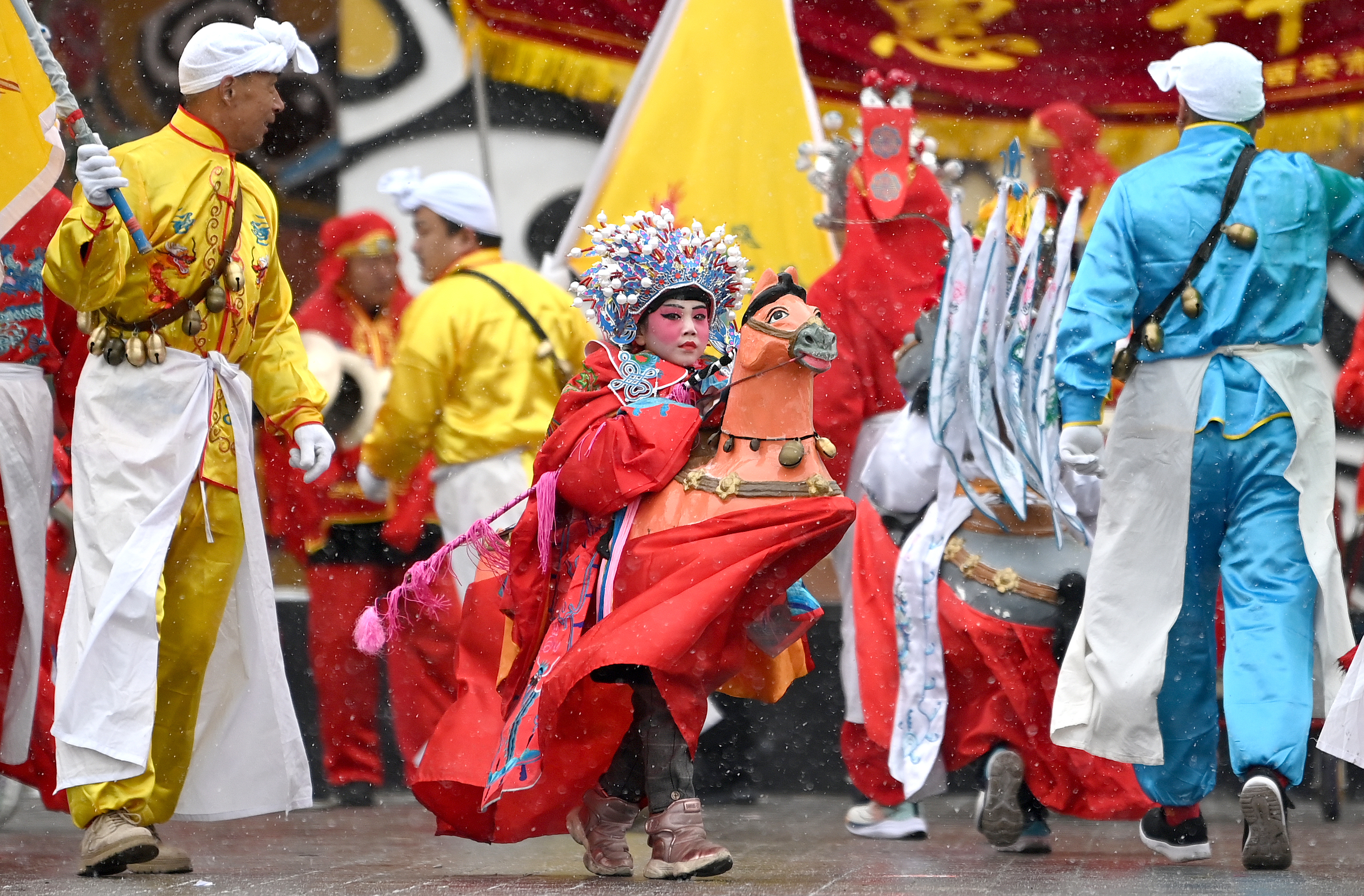 2月22日,在隴州社火過(guò)大年暨陜西省民間社火展演上,隴縣馬社火在進(jìn)行巡游。新華社記者劉瀟攝